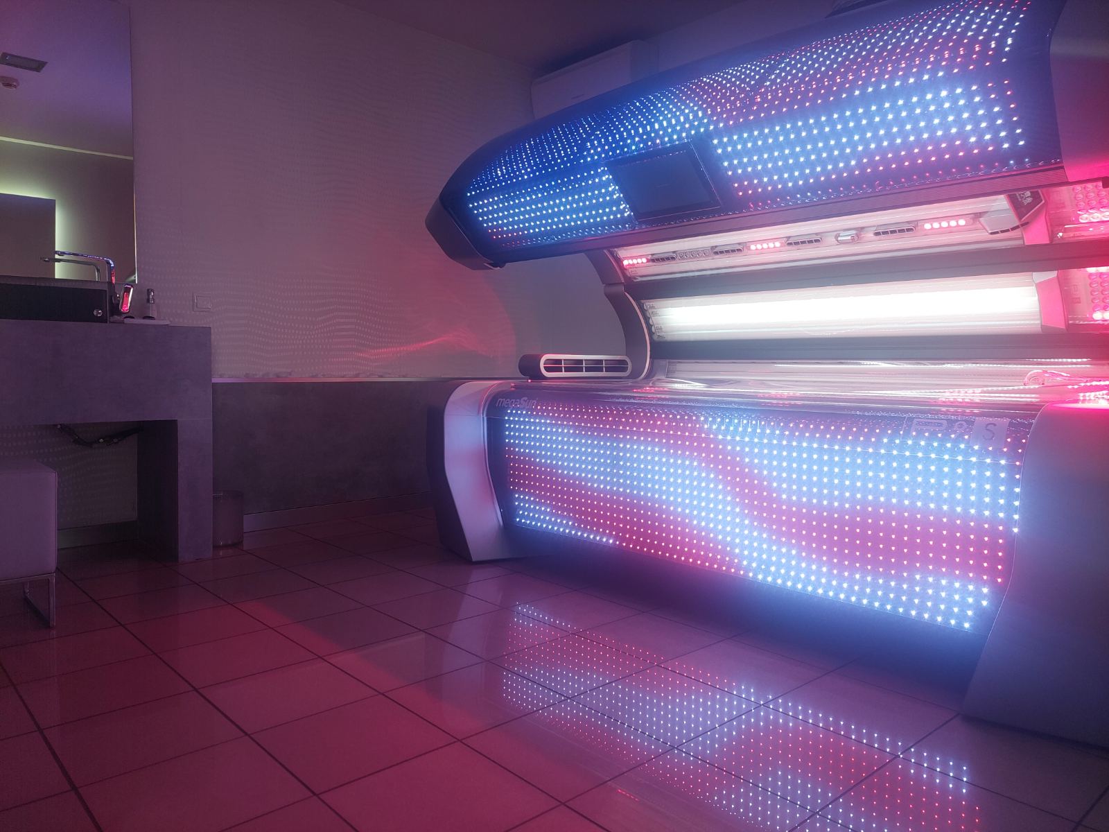 Τo καινοτόμο σύστημα SunSphere που βασίζεται σε LED του P9S αποφεύγει αυτήν την ανεπιθύμητη υπέρυθρη ακτινοβολία και χρησιμοποιεί μόνο τα επιθυμητά μήκη κύματος κατά το μαύρισμα. Κατανέμεται ομοιογενώς μέσω ασφαιρικών γυάλινων φακών. Τα μπλε UVA LED εγγυώνται εξαιρετική άμεση χρώση για άμεσα ορατό μαύρισμα. Τα κόκκινα LED ομορφιάς παρέχουν φροντίδα του δέρματος κατά το μαύρισμα. Και οι κίτρινες ειδικές λάμπες UVB δημιουργούν χρωστικές και βιταμίνη D. Ο τέλειος φασματικός συνδυασμός για μια ασύγκριτη εμπειρία μαυρίσματος. Επιπλέον, το νέο σύστημα SunSphere προσφέρει σταθερά υψηλή απόδοση LED, καθιστά περιττές τις αλλαγές λαμπτήρων υψηλής πίεσης και μειώνει δραστικά την κατανάλωση ενέργειας.